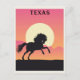 Anyone would love to receive this vintage travel postcard featuring a retro illustration of a horse and a mountain at sunset in Texas!