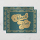 This design has a thank you typography art in gold, with a bluish background to it. A vintage pattern frame is on the back and front of the card, in gold colouring. At the back of the design, you can add your own personalised message and name(s). This thank you card can be used for occasions including weddings (primarily), baby showers or even for birthday parties. Consider using the Design tool for font style editing, including font size, font style and colour customisation. Visit our Collections for similar thank you card designs.