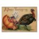 A heartwarming vintage Thanksgiving card showing a turkey pulling a pumpkin full of autumn harvest.