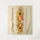 This old fashioned company holiday party tapestry features a vintage drawing of orange pumpkins, fall leaves, and cute autumn sunflowers. Nostalgic Happy Thanksgiving decor with brown script of your business name and personalised professional message on the back for clients and friends.