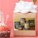 An array of old tin jugs advertsing milk, teacaddies and candy tins - the perfect still life for a kitchen or dining area, and for people that love nostalgia, country style and the vintage look.