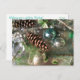Vitage tinsel, real pine ones and glittery ornaments with silver and cool colours for this HOLIDAY postcard; a FARMphemera image, all photography and design by Diane Heller.