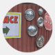 Vintage Tire Store Classic Round Sticker... country, general store, tires, rims, wheels, metal signs, mechanic, red, fence, wooden, vintage, business or personal uses.