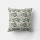Beautiful vintage green and white Christmas toile pattern with kids building a snowman Christmas pillow for your perfect decorating.