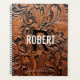 Rustic brown planner with a black monogram and white typography on a tooled faux leather background. Personalise with your name, initial on the cover.