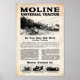 This vintage print for the Moline Universal Tractor was created from an original ad seen in newspapers around 1919 for the Monroe Overland Company. It has been painstakingly brought back to its original glory and presented on poster paper. It is recommended that you upgrade to heavy duty matte if framing as a print. It measures 8" by 12" and can be enlarged to 24" by 36" and is standard size so you can frame yourself or add a standard or custom frame here. The print is fully readable (at larger size) by the observer and some of the text reads - Do Your Own Belt Work Including Threshing. With a Moline-Universal Tractor and a small threshing outfit you can be independant of your thresherman. You can thresh when and where you want to at less trouble and expense. Many Moline-Universal owners do their own threshing and then their neighbours.' This is a splendid and eco nomical plan try it and use the Moline-Universal. The Moline-Universal has plenty of power for this work. It is rated at 18 h. p. on the belt; but under official test at the National tractor Demonstration it developed 26.48 h. p. And at the Ohio State University, under the offcial test it developed 28.7 h. p. So you see that you get from 50 to 60 per cent re serve power when you buy a Moline-Universal The perfected overhead valve four cylin der engine of the Moline-Universal develops unusual power and is very economical in op eration. Variations in load do not affect the engine speed of the Moline-Universal in the slightest, due to an electrical governor that instantly regulates the throttle to compensate for the slightest change in pull. Electricity, the most sensitive, quickest acting force known to man, holds the engine of the Moline-Universal un der control, and makes it run steady under all conditions. The pulley on the Moline-Universal Trac tor is located directly in front of the engine, making it easy to line up to belt and change from one operation to another. A friction clutch pulley can be furnished. There are many other splendid features on the Moline Universal Tractor we would like to show you. This tractor print would make a great addition to any business that deals in tractors or farm equipment in general. It also goes well with any wall where a vintage or eclectic feel is wanted.