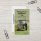 A close-up photograph of an old red tractor cutting hay in a field with a sloping field of cut hay behind, on a business card template for sales, spare & repairs of farm machinery and implements etc. There are templates on both front and back for business information.