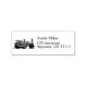 Address stamp for the train lovers feature vintage black and white locomotive / train engine illustration with 3 row customisable text for name and address