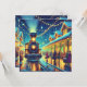 An old fashioned train station on Christmas Even with people coming and going trying to make it home. Vintage retro vibes. As the snow falls on this magical night, I wish you everything merry and bright. A sweet personalised holiday card to give you a warm and cosy vibe.