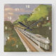 Vintage Train Vacation, Locomotive in Country Square Wall Clock
