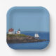 Vintage Travel Blue Ocean Lighthouse Paper Plate. This design features Curtis Point Lighthouse, In Camden Harbour.