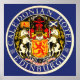Vintage illustration European travel poster or luggage label from the Caledonian Hotel, Edinburgh, Scotland featuring the royal coat of arms of Scotland. A circle design with a red lion symbolising the King of Scots, on top of the shield is the helm and crest. The lion wears the Crown of Scotland and holds both the Sceptre and the Sword of State and supporters are two crowned and chained unicorns. Surrounding the shield is the collar of The Most Ancient and Most Noble Order of the Thistle. In Defens, British Transport Hotels.