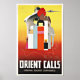 Orient Calls Oriental Tourist Conference Travel By Aeroplane and Ship - Vintage Travel Poster. Old travel poster advertisement promoting vacation travel to Asia.