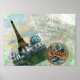 Featuring an original charming vintage collage showing a vintage travel postcard of the Eiffel Tower, a vintage map of Paris, vintage lettering and signature, and vintage product label.