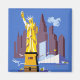 Vintage travel poster for Allegheny Airlines showing the Statue of Liberty and the New York City skyline, with the Empire State Building and the Chrysler Building, among others. circa 1950