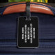 This was purchased as part of a 40th Birthday present for my nephew who is going to Vegas. It is made of high quality, very study and we decided only to put his name on the back of the tag, but you can add a full address if you so wish.