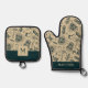 Vintage Tropical Pattern Oven Mitt & Pot Holder Set