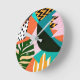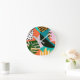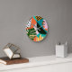 Add a touch of retro charm to your space with this stunning round clock. Featuring vibrant and colourful tropical foliage graphic motifs, this clock brings a burst of vintage tropical vibes to any room. The retro-inspired design showcases vivid palm leaves, creating a lively and refreshing atmosphere. Perfect for adding a splash of colour and a hint of nostalgia to your home decor.
