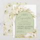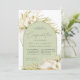 Tropical chic confirmation invitations in an alluring neutral colour palette feature a central arched element bearing your church ceremony and celebration or party details, accented with pale green watercolor palm fronds, beachy island foliage, white orchids, boho dried botanicals and pampas grass.