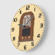 Bring classic style to your wall with this unique clock featuring the vintage tube radio cabinet graphic. The beautiful antique wooden console illustration creates a focal point with a retro style furniture decorative aesthetic. This functional timepiece is perfect for the kitchen, office, or living room, offering a nod to old-fashioned communication technology and nostalgic illustration art. A perfect gift for collectors and home decorators. Search terms: Vintage radio cabinet wall clock, Retro style music room timepiece, Classic wooden console clock, Antique electronic device home decor.