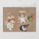 Vintage Two Christmas Angels Feeding Birds Holiday Postcard