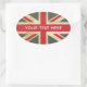 Oval sticker with The Union Jack flag vintage design. This United Kingdom flag design is a great way to show you are proud to be British.