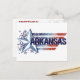 The United States is a great country and Arkansas is a great state. Share your American pride with a Vintage Arkansas Flag with Star Postcard from Phete First. A big blue star shoots out a patriotic stripe of red and blue that looks like an old flag; ‘Arkansas’ is written in navy with an antiqued effect while a host of smaller stars surrounds it. This distressed design has an authentic, grunge feel, and its interesting diagonal makes it edgy and contemporary. The back says ‘Greetings’ and you can customise your own personal message. Don’t forget matching postage and envelope stickers.