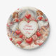 This Valentine's Day paper plate features a charming watercolor illustration of vintage-inspired cherub angels, accented with classic red hearts and pink roses. The paper plate is customizable or can be purchased as shown with the message "Happy Valentine's Day." This festive paper plate is suitable for various events, including house parties, birthdays, weddings, bridal showers, and charitable gatherings.