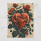This vintage Valentine's Day postcard features intricately illustrated red roses and delicate hearts, creating a timeless romantic ambiance. A faded, sepia-toned background enhances its antique charm. In one corner, an old-fashioned love letter with elegant script adds a touch of nostalgia, capturing the essence of enduring love through the artistry of a bygone era.