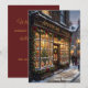 Send a uniquely nostalgic greeting this season with this beautiful vintage apothecary Christmas card. The charming illustration features a snowy Victorian street scene focused on an old-fashioned pharmacy storefront, warmly glowing with festive garlands, red bows, and antique medicine bottles in the window displays. Perfect for pharmacists, pharmacy technicians, medical professionals, or anyone who loves historical holiday aesthetics. The front features the text "Happy Holidays!", while the rich, deep red reverse side includes a delicate snowflake motif and easily customizable template text so you can add your own personalized seasonal message, name, or family greeting.