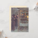 Vintage illustration Victorian Merry Christmas image featuring a crowd of happy people outside in the snow waiting to go to a winter holiday party. Season's Greetings!