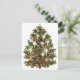 Vintage illustration Merry Christmas holiday image featuring a decorated pine tree. This classic Victorian fir tree die cut has burning candles for lights, strings of beads, ornaments and toys for decorations.