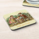 Vintage Victorian Easter beverage coaster featuring a boy offering a basket of Easter eggs to his lassie!
