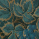 This image was derived from an antique 1875 - 1885 Victorian era pattern of dense foliage with clusters of pomegranate, grapes, and other fruit, in colours of diminished intensity, against a blue-black field, the leaves outlined in neutral tan.