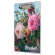 Vintage Victorian Roses Custom Clipboard beautiful roses all shades of pink, orange and red on blue background with green leaves with antique look You can personalise it or delete text