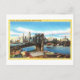 This is a reproduction of a vintage travel postcard showing the Brooklyn Bridge and East River in New York City, New York.