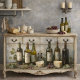 When applied to furniture, this sophisticated design transforms ordinary pieces into celebrations of epicurean culture. The muted palette of forest greens, amber glass, and cream creates a refined atmosphere, while the classical composition brings old-world elegance. As a focal point, it elevates spaces with an air of cultivated taste and European sophistication.