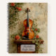 A romantic vintage-style illustration featuring a classical violin resting against an ornate wooden cabinet, surrounded by climbing roses and soft floral wallpaper. Warm tones and elegant details create a timeless atmosphere inspired by classical music and vintage decor.