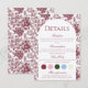 Complete your wedding suite with this timeless details enclosure card, designed in an elegant burgundy toile pattern. Perfect for providing guests with important information about your celebration, this refined card ensures they have everything they need—from reception location to accommodations, dress code, and wedding website.
