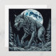 Ai art depicting a cool line art werewolf in blue and black on the prowl on a dark night in the forest. Full moon starry background. Difficult level.