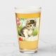 Glass Tumbler featuring a cute white and brown kitten! This blue eyed kitty sits in green grass surrounded by beautiful pink and red flowers. A good gift for cat lovers and Victorian art enthusiasts!