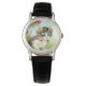 Watch featuring a cute white and brown kitten! This blue eyed kitty sits in green grass surrounded by beautiful pink and red flowers. A good gift for cat lovers and Victorian art enthusiasts!