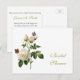 Vintage botanical art white rose and butterflies bridal shower postcard invitations. P.J. Redoute illustration.