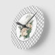 Vintage White Roses Checkerboard Round Clock