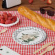Pretty vintage white roses bouquet with grey chequerboard border is perfect for any occasion from weddings to everyday decor