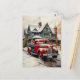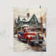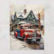 Vintage Winter Christmas townhouse and old red truck in a snowy landscape
