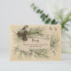 Vintage Winter Country Wedding RSVP Card. Customise text and font to your event or occasion. Cute black capped Chickadees on Pine Cones. Pine tree needles have a bit of snow and sparkle .