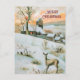 Vintage snow covered winter landscape with deer Christmas greeting holiday card