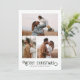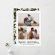 This beautiful holiday photo card features vintage styled typography reading, "Merry Christmas," along with three photo templates. The back of the card boasts a vintage design of winter oranges and blossoms.
