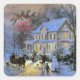 Vintage Winter Town Merry Christmas Square Sticker